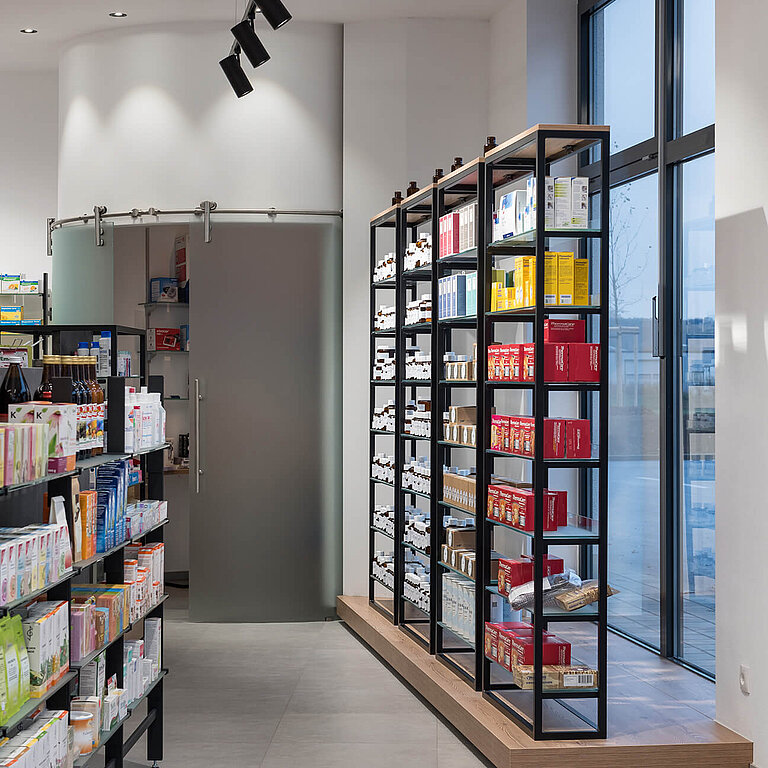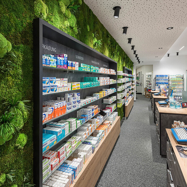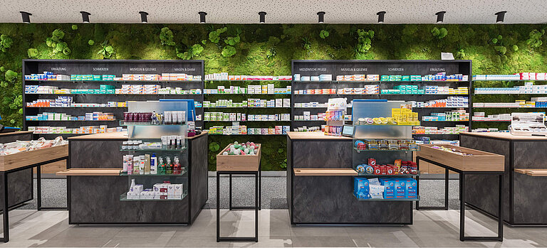 Kompletteinrichtung Apotheke inkl. Offizin, Labor, Arbeitsplätzen und Personalbereich