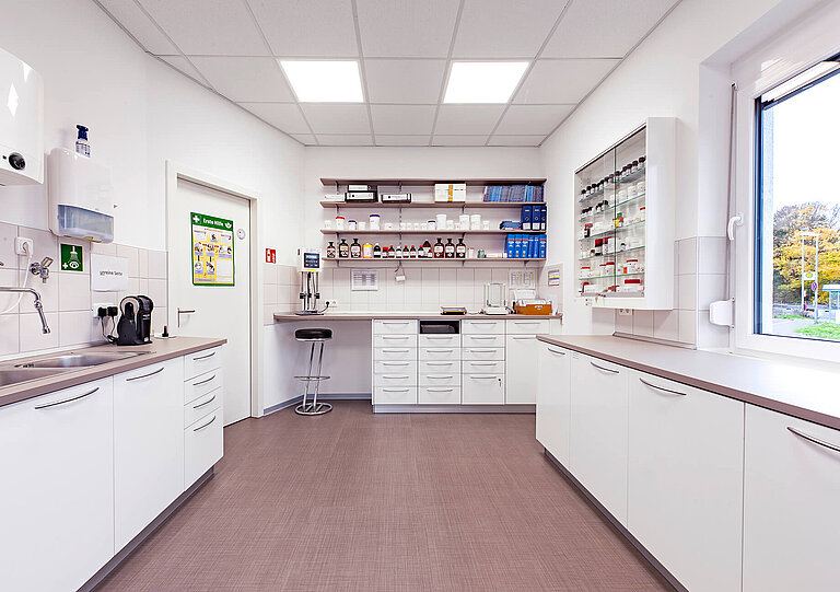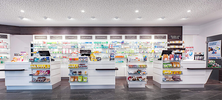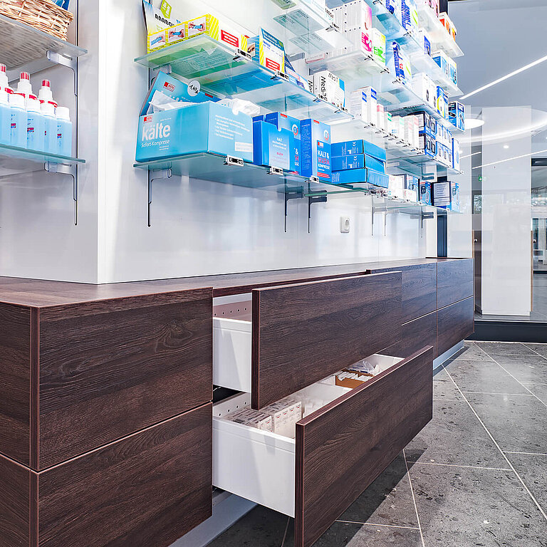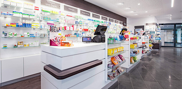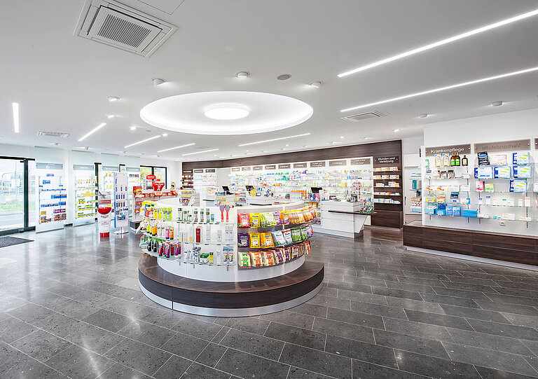 Kompletteinrichtung Apotheke inkl. Offizin, Beratung, Labor, Arbeitsplätzen und Personalbereich