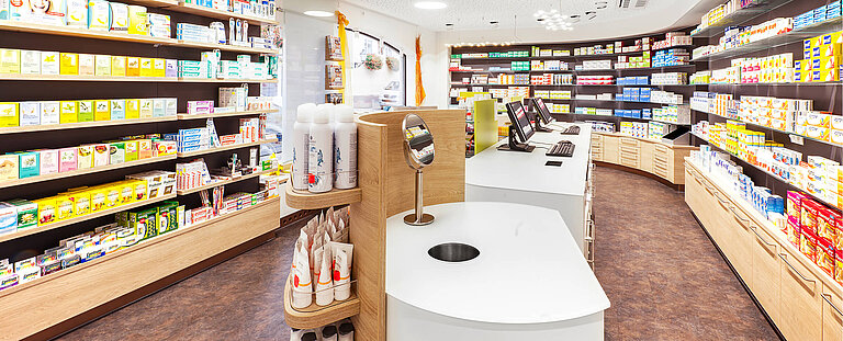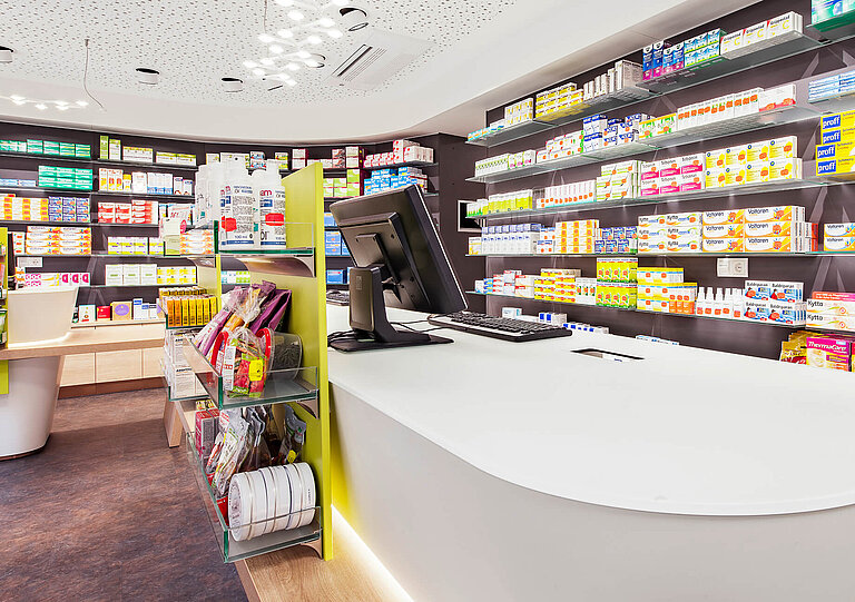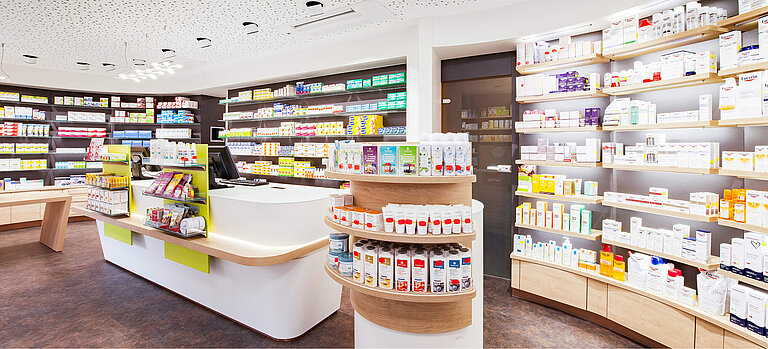 Kompletteinrichtung Apotheke inkl. Offizin, Beratung, Labor, Arbeitsplätzen und Personalbereich